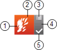 2 | Main background color of the button | Event category. The events that occur in the Desigo CC management station are grouped into categories, which are color-coded by severity. The specific category colors employed are dependent on the event schema. |
