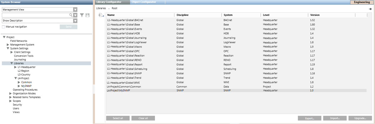1. When the import is complete, the SNMP library appears under its specific library level and folder in System Browser.