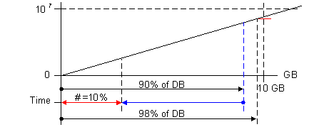 This 10% of data always refers to the entire time axis for the collected data. Therefore, it cannot be exactly determined how many entries or the database size that is actually deleted.