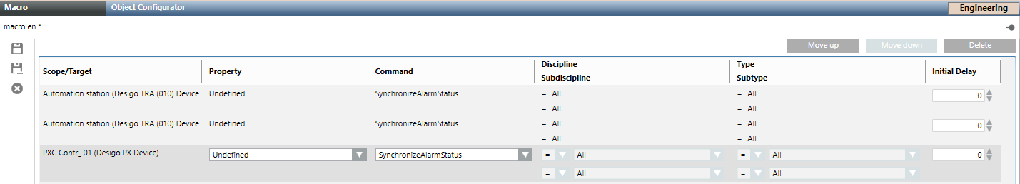 - In the Command column, select the option SynchronizeAlarmStatus from the drop-down list.