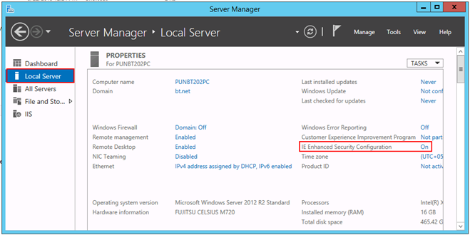 Cause: The IE Enhanced Security Configuration is ON in Windows Server machines.