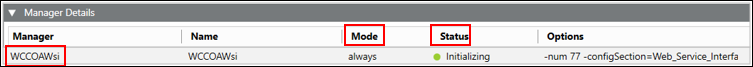 Cause 3: Status of the Web Services (WSI) manager in the Manager Details expander of the project in SMC is Stopped (and possibly Mode = manual).