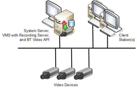 The VMS can be installed on the same computer as the Desigo CC server (local VMS) or on a separate one (networked VMS).