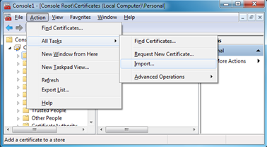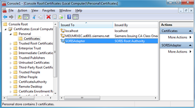 - You want to install the SORISRootCert.cer file and the SORISServerCert.pfx file to the Microsoft Management Console.