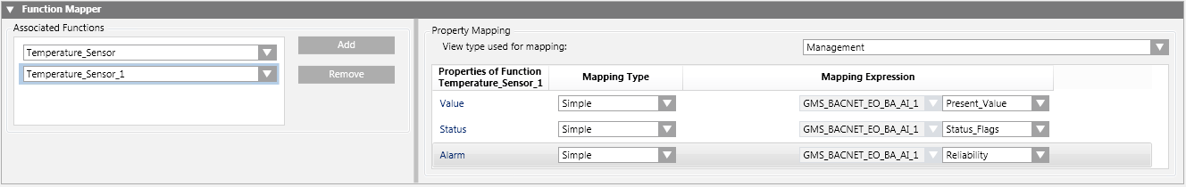 NOTE: For more information about Mapping Type and Mapping Expression, see Function Mapper Expander. - Repeat steps 3 to 7 for all functions you want to assign to this object model.