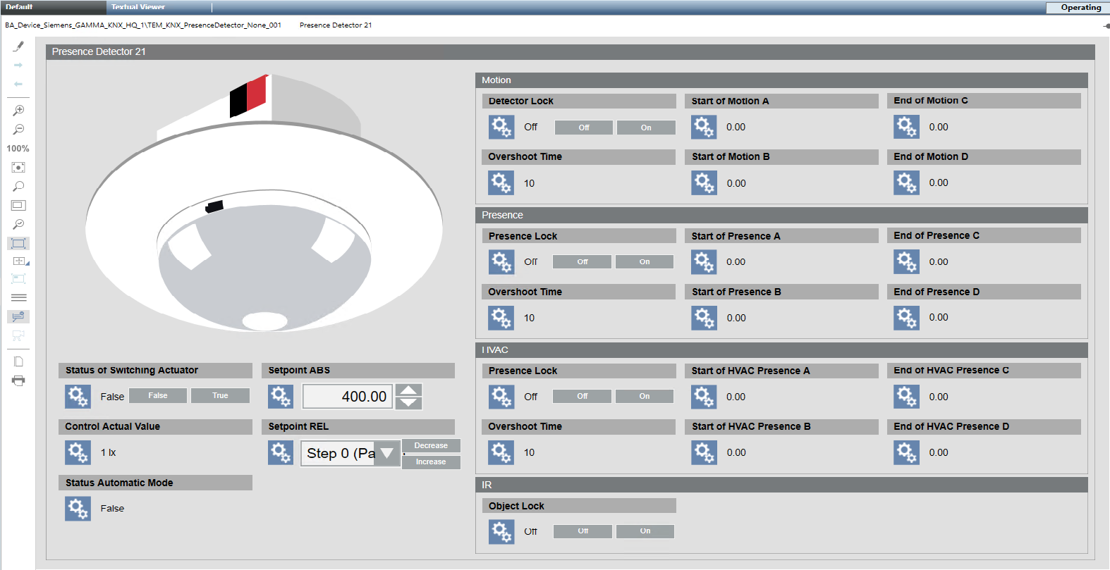 In Engineering mode, this is the graphic template for the UP 258D31, UP 258D41, UP 258D51, and UP 258D61 presence detectors.