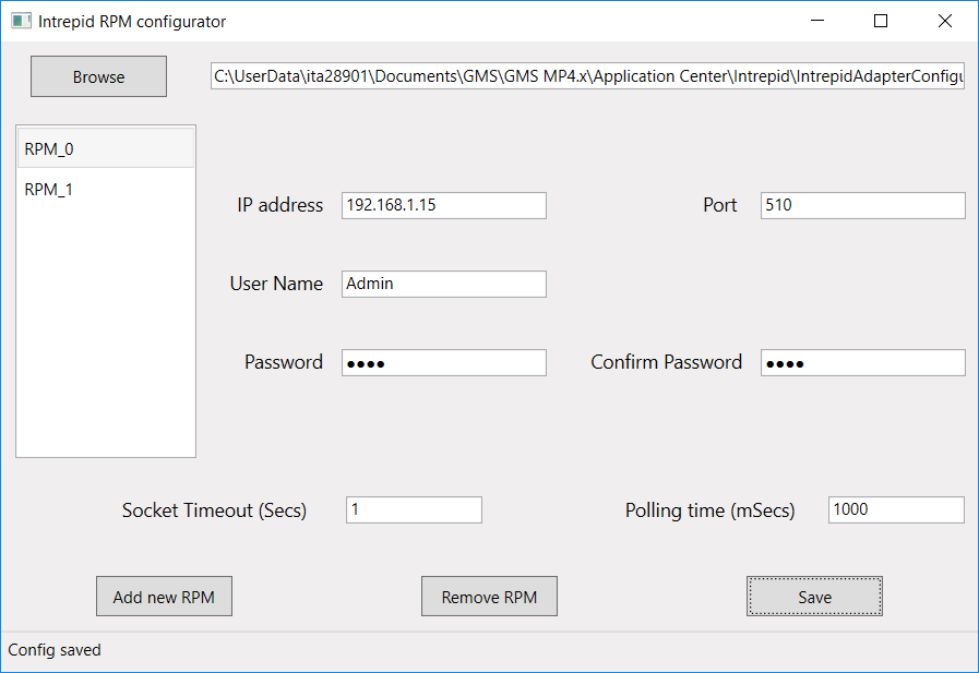 - From the local folder, run IntrepidRPMAdapterConfigTool.exe.