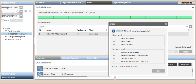 - When the import completes successfully, the Import dialog box displays a summary of the import information.
