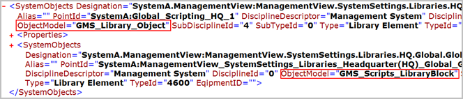 System Objects (libraries for the Base as well as for the configured extension module libraries), their properties and script library block. Object Models configured in the system which in turn include information related to stations, devices and properties, drivers, and networks.