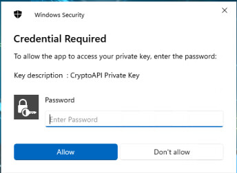- If a Credential Required dialog box appears, enter the Password for the Flex client host certificate and click Allow.