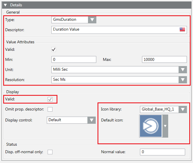 Properties | Optional | Object containing the valid range values. For details, see Table GmsDuration Properties, below. If the object is empty (“Attributes”: { }), the range values are reset, while the range is |