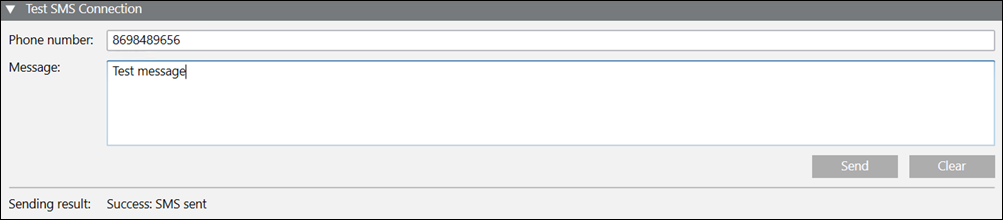 9. In the Test SMS Connection expander, you can send a test text message.
