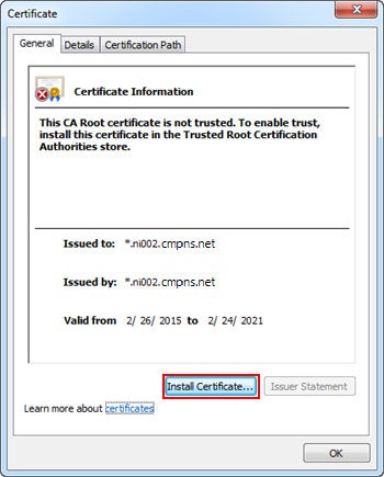In the Certificate dialog box, click Install Certificate.