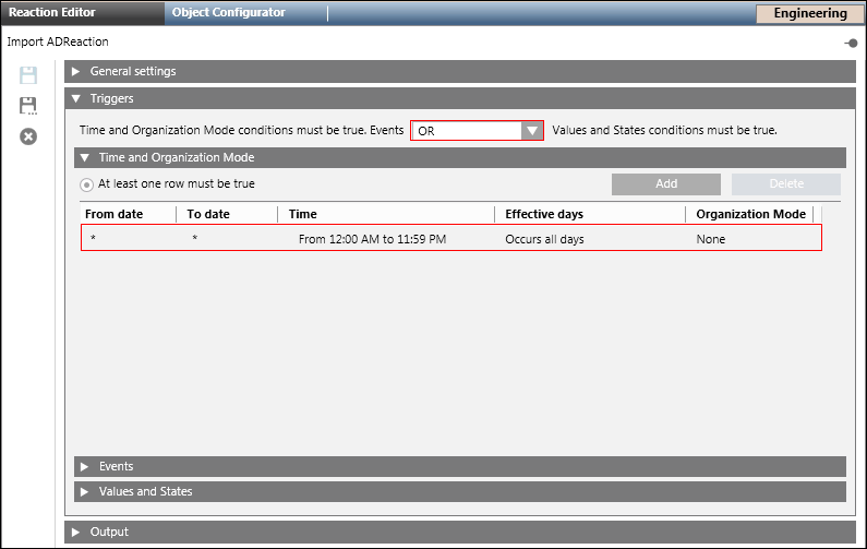 - Click Add to add a new time row and enter a new time or schedule that periodically triggers the Import From Active Directory command.