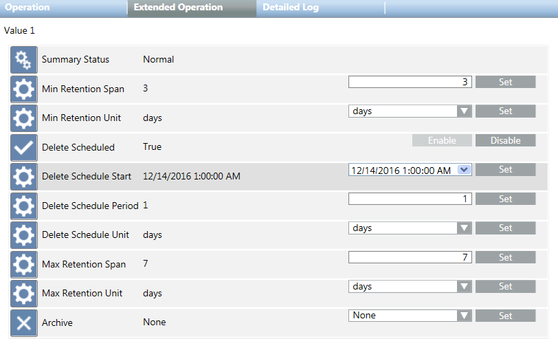 d. Select Value Log and continue with step 2 to 4. - In the Extended Operation tab, select the Archive property.
