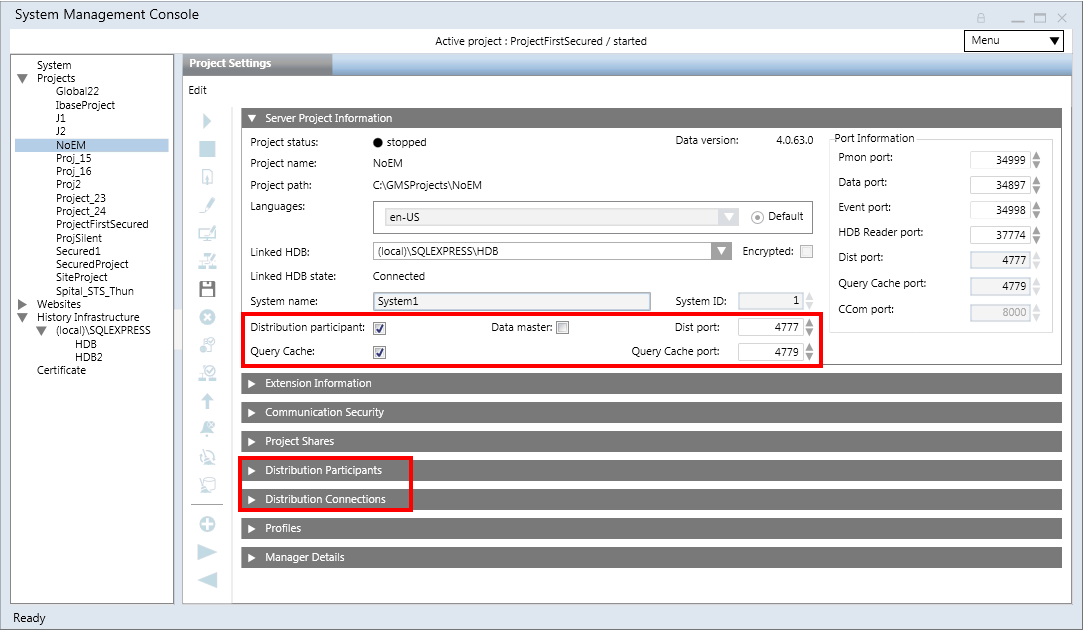On the Server SMC, when you modify the project, the Distribution participant check box is enabled. Selecting the check box has the following effects: