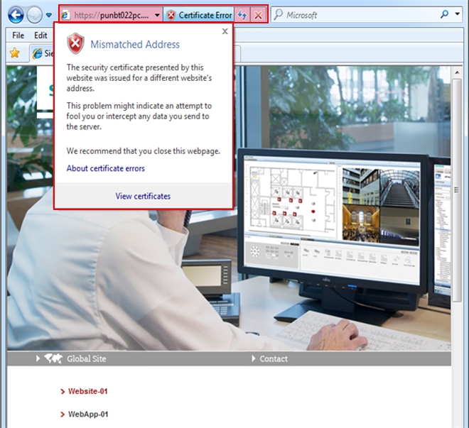 - If the website certificates are not installed, refer to Installing the Website Certificate.