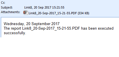 After the report is executed, the corresponding file (PDF, XLSX, or DOCX) can be downloaded and saved in the specified directory on the local client machine. Also, if configured, an email can be sent immediately or at a scheduled time to a list of established recipients.