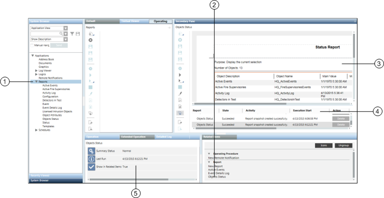 3 | Executed Report Display | Location of selected Report Definition—before and after execution—with command toolbar to execute the Report Definition located on the left side of the Secondary pane. |