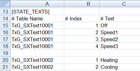 | The number of entries in the Alarm class and Normal Text) must match the number of entries in the column Alarm Value. NOTE: SX Open could only support one text. |